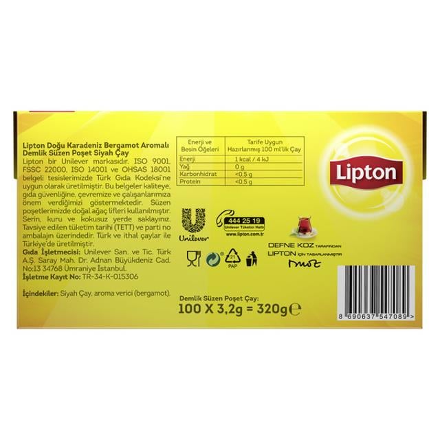 Lipton Doğu Karadeniz Demlik Poşet Çay 100'lü 1 Adet (833299)